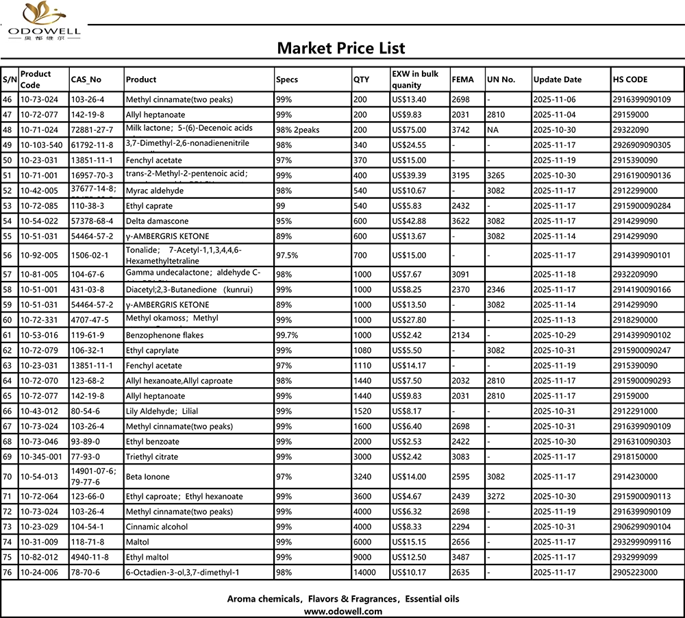 Odowell-Bazar qiymətləri siyahısı-2025.10.25-2025.11.25