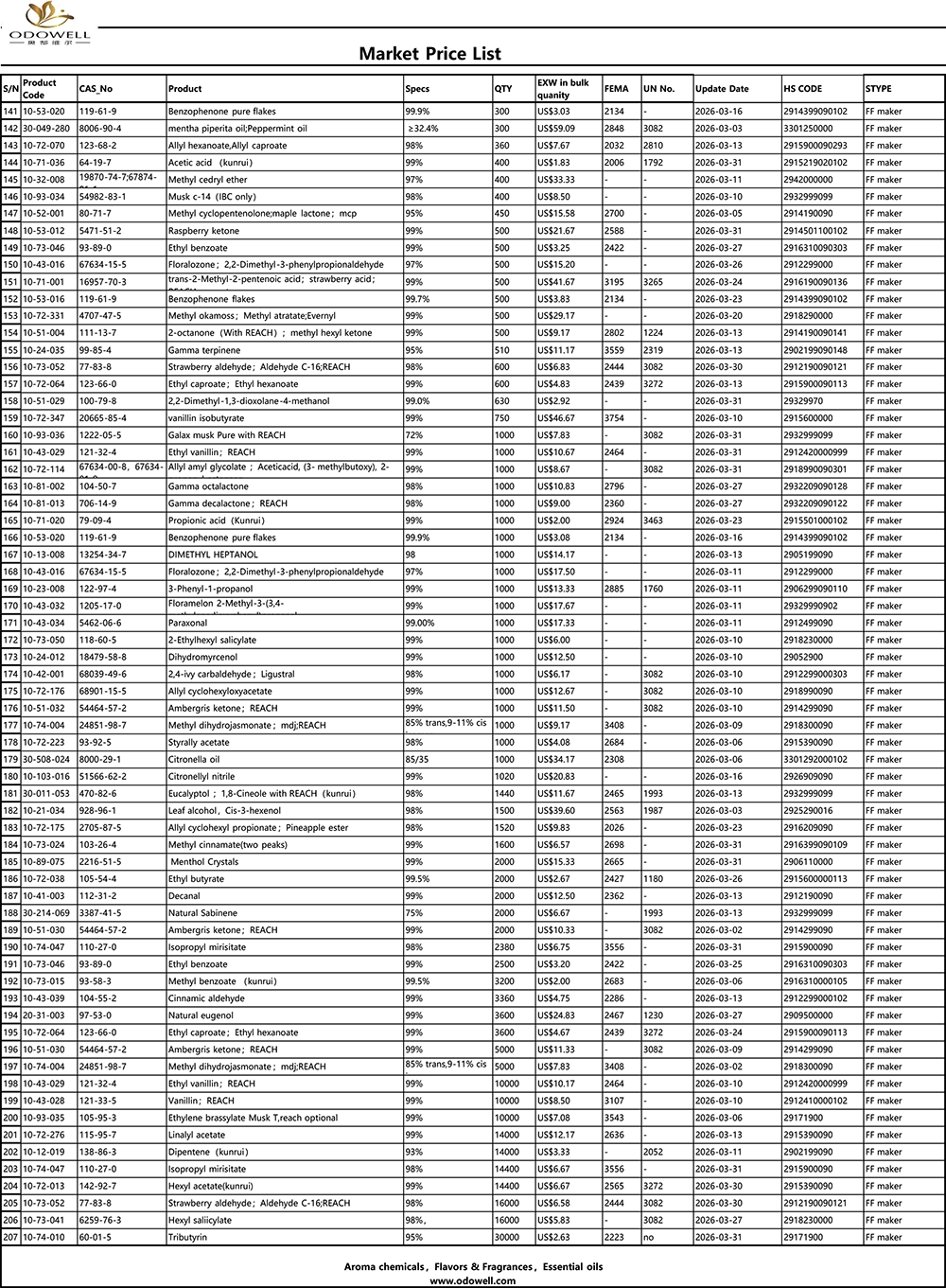 Odowell-Bazar Qiymət Siyahısı-2026.3.1-2026.3.31